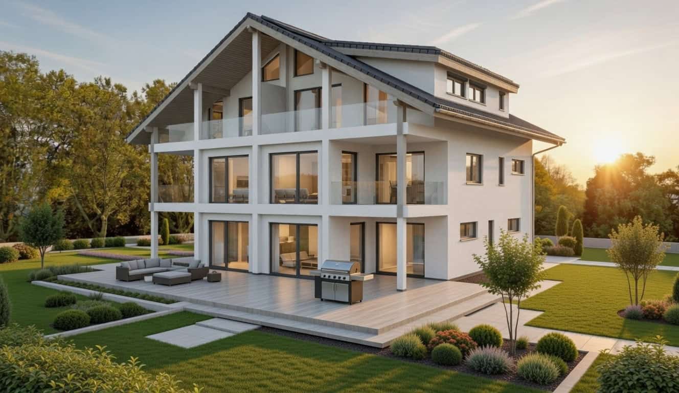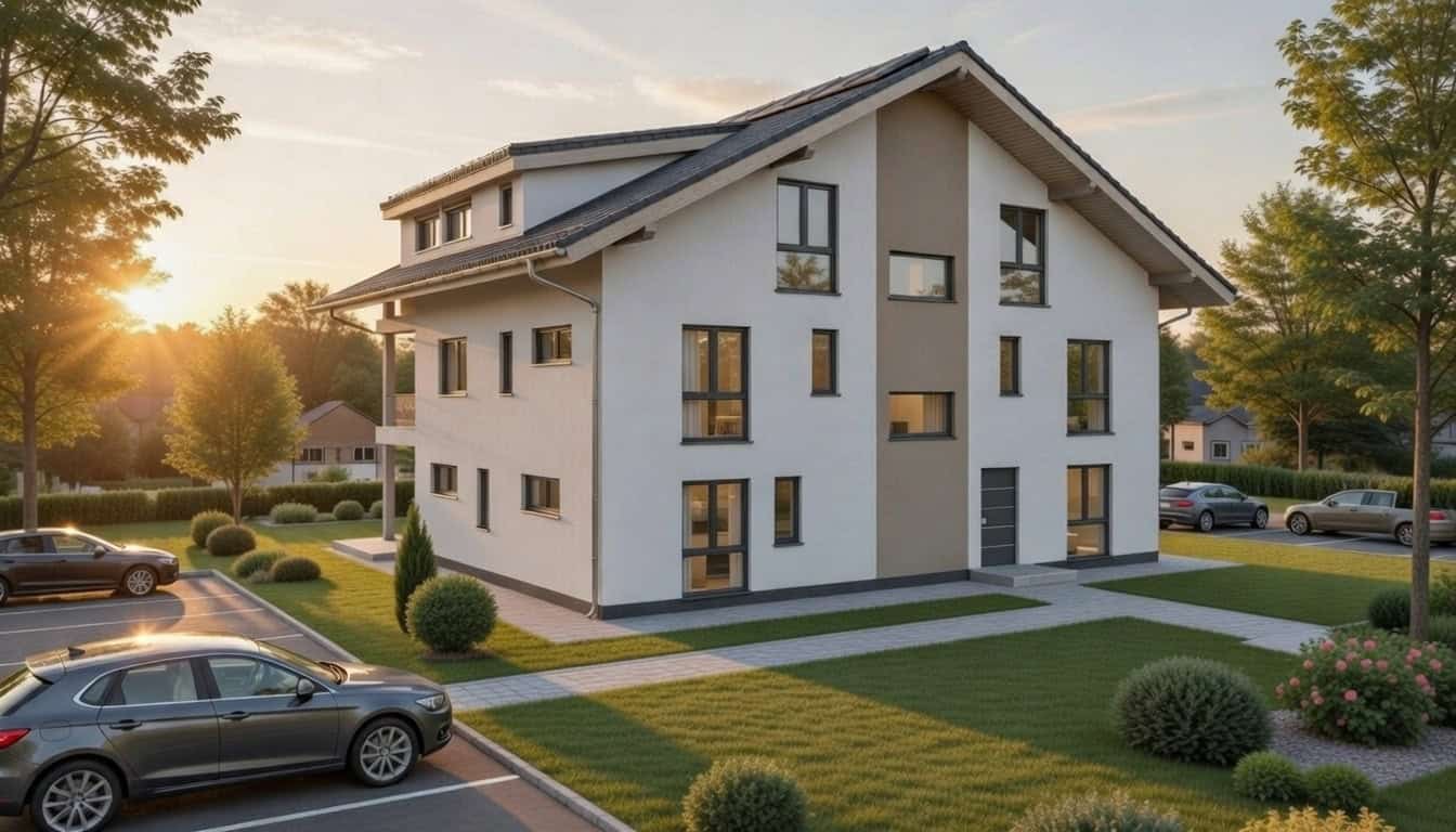 Planungsbeispiel eines Mehrfamilienhauses mit 5 Wohneinheiten auf insgesamt 422.07m² Wohnfläche.