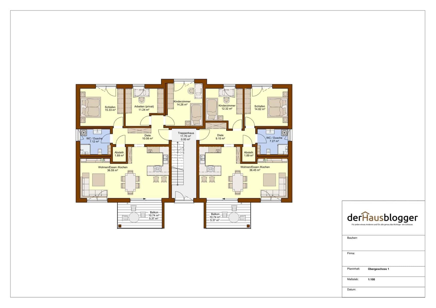 Planungsbeispiel eines Mehrfamilienhauses mit 5 Wohneinheiten auf insgesamt 492.36m² Wohnfläche.