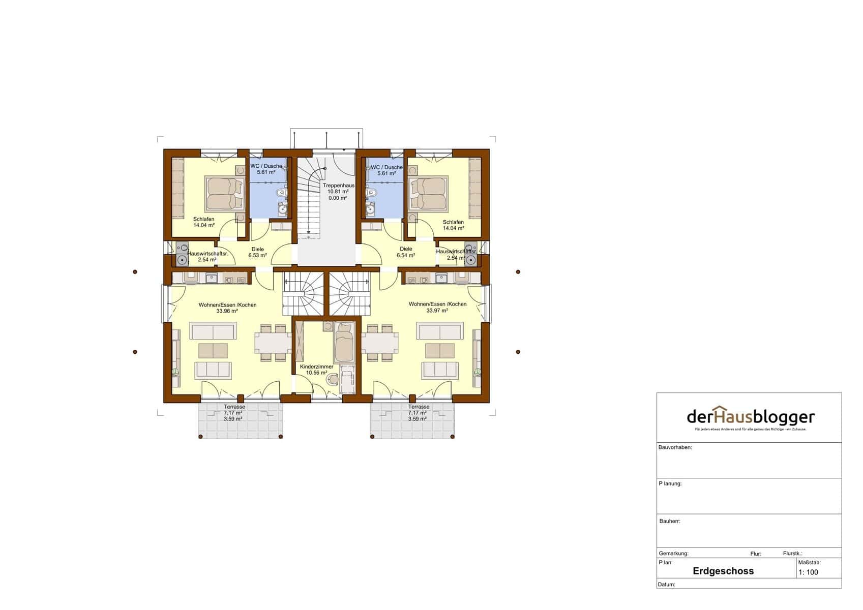 Planungsbeispiel eines Mehrfamilienhauses mit 6 Wohneinheiten auf insgesamt 518.16m² Wohnfläche.